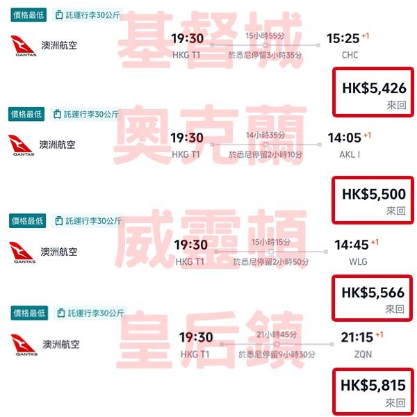 【紐西蘭】等咗好耐啦!終於跌穿六千!澳洲航空來回紐西蘭各地連稅$5,426起!2月至11月指定日子出發*
