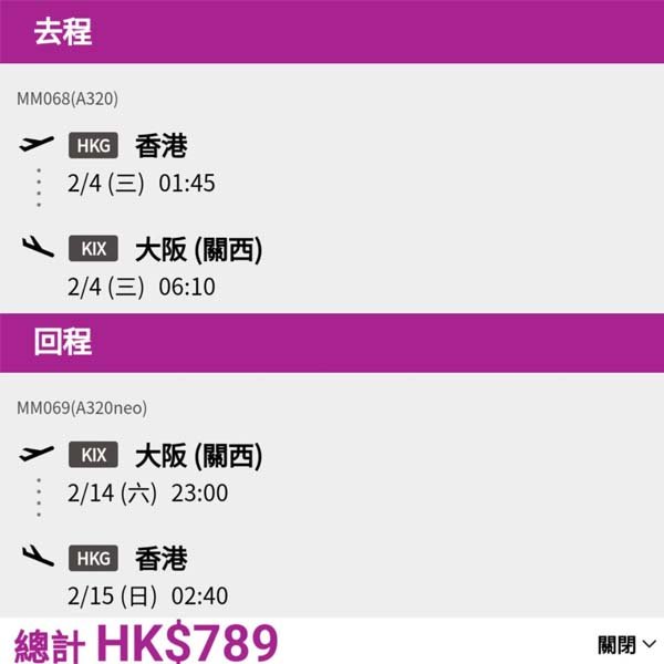 【大阪】最平唔使一千!唔收燃油附加費就是正!樂桃航空來回大阪連稅$789起!1月尾至10月尾出發