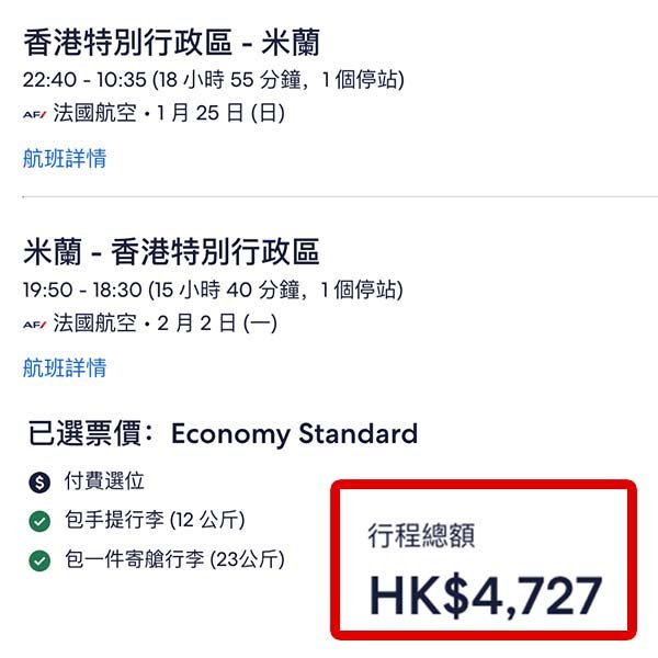 結論:歐洲真係長期貴,今次法航竟然減到最平唔使五千,仲要包行李,真係抵飛!不過優惠日子就唔係好多,如果時間啱又想去歐遊,係絕佳入手機會呀~