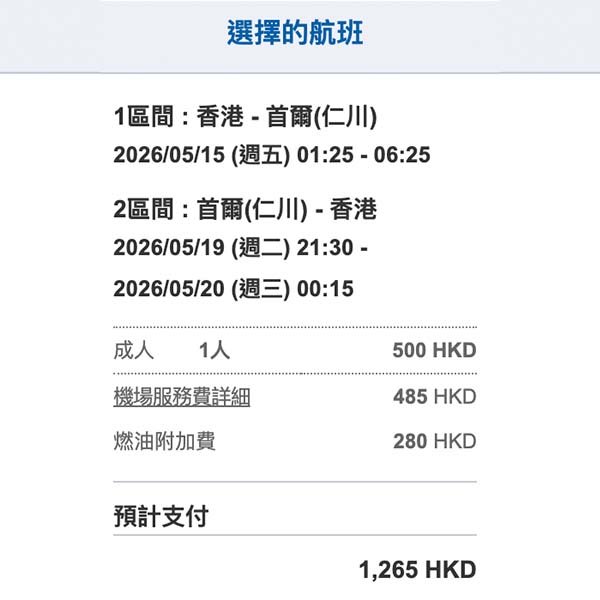 結論:又多間飛首爾啦!唔包行李個價幾抵玩,包15kg千七左右就不過不失,貴過港航,但時間就好過港航,可以玩到盡!多個選擇對大家都係好事呀~希望可以令首爾整體平啲啦!