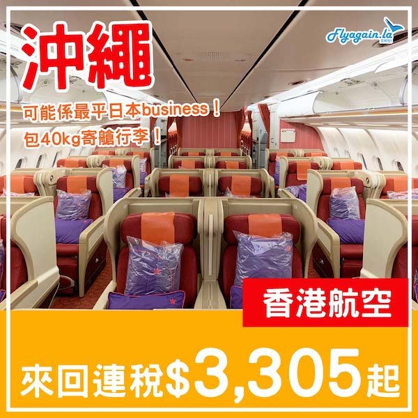 【沖繩】可能係最平嘅日本商務艙!香港航空商務艙來回沖繩連稅$3,305起!5月頭至7月中出發