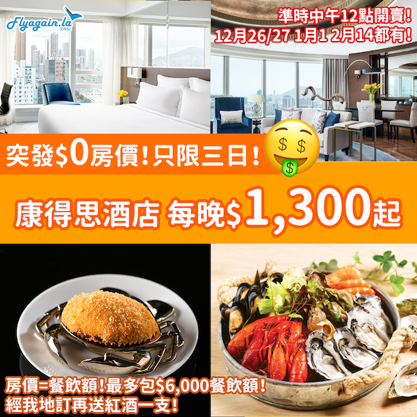 【酒店】突發快閃!中午12點開賣!康得思酒店零房價優惠,每晚最平$1,300起!部分旺季日子適用!2023年2月28日或之前入住