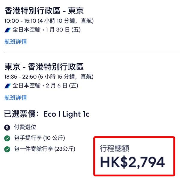 【東京】今次只減成田!早去晚返靚時間!ANA全日空來回東京成田連稅$2,794起!2026年1月至3月指定日子出發