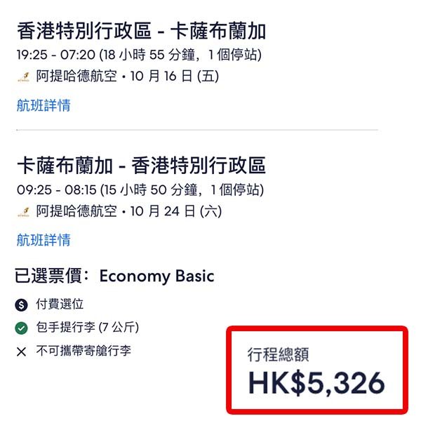 **可中停玩埋阿布札比,來回連稅HK$5,672起(包寄艙行李HK$5,992起)!如中停可有更多出發日子選擇,但留意去程逢一、二、四、五、六;回程逢日、一、三、四、五**