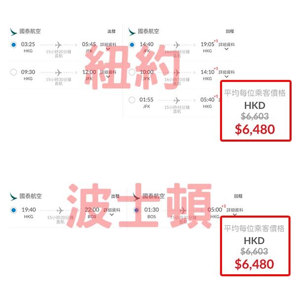 【美國】直航東岸都破抵價!國泰航空來回紐約/波士頓連稅$6,480起!2026年1月至3月指定日子出發*