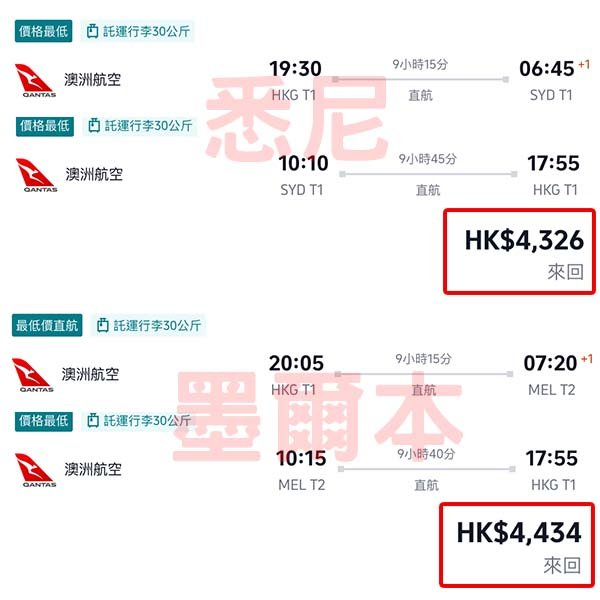【澳洲】暑假都有平!可以open jaw!澳洲航空直航來回悉尼/墨爾本連稅$4,326起!2月尾至11月中出發