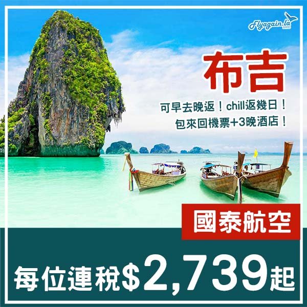【布吉】陽光海灘chill幾日!布吉4日3夜套票,包國泰機票+3晚酒店,每位連稅$2,739起!11月至2026年3月指定日子出發*