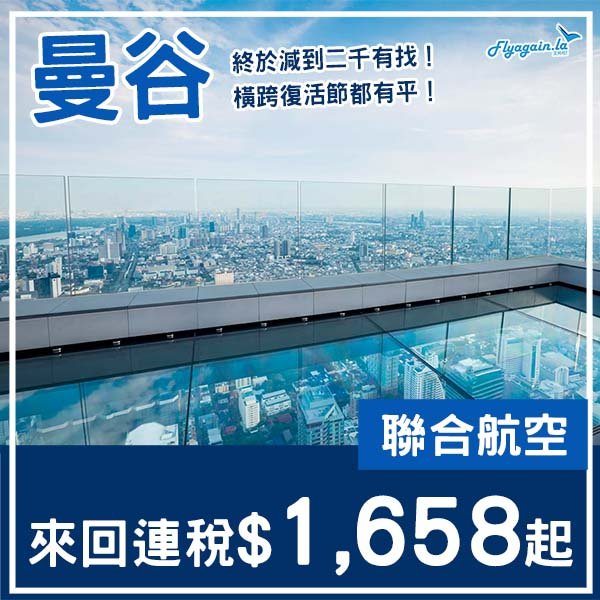 【曼谷】終於減到二千有找!橫跨復活節都有!聯合航空來回曼谷連稅$1,658起!2026年1月至6月指定日子出發*