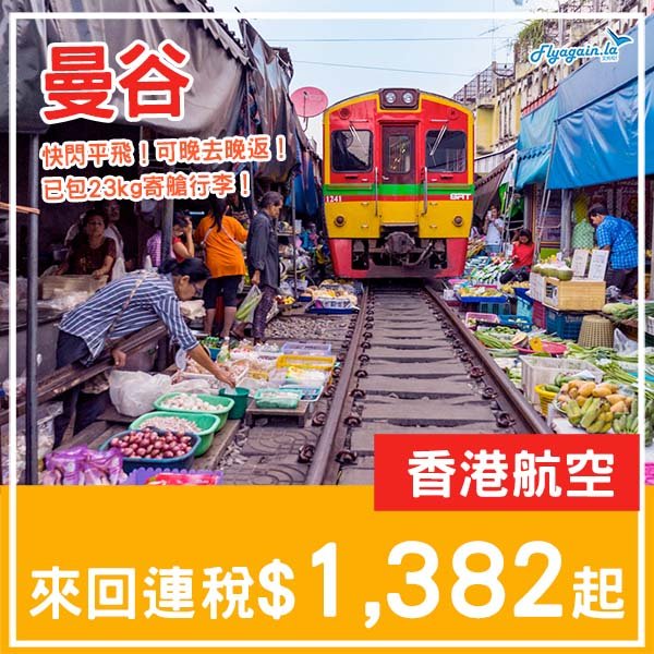 【曼谷】抵價快閃飛!可午去晚返/晚去晚返!香港航空來回曼谷連稅$1,382起!3月至6月指定日子出發