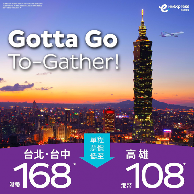 【台灣】可Open Jaw!香港快運來回連稅高雄$1,022起,台中台北$1,142起,7月11日前出發