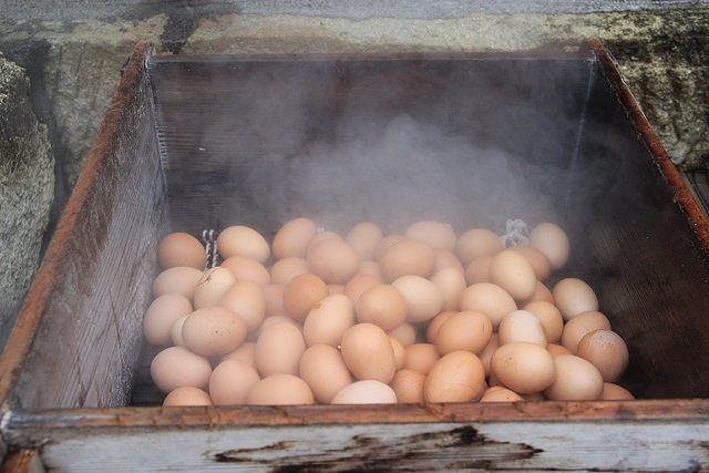 這裡還可以吃到用溫泉熱氣蒸的雞蛋,只要50 yen。