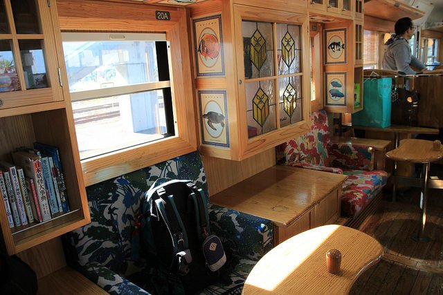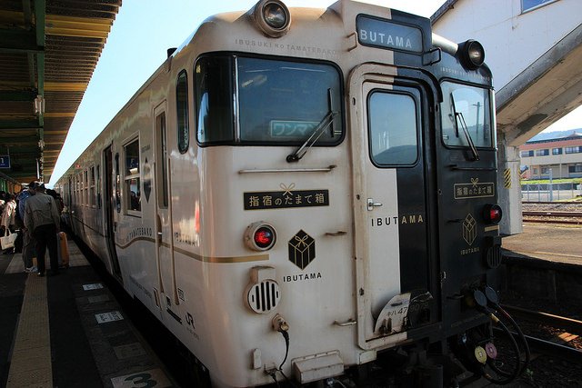 九州有很多觀光火車,指宿玉手箱號是其中一架很受歡迎的列車,來往鹿兒島中央站和指宿之間,因為全車指定席,所以大家要坐的時候一定要提早用JR Kyushu Pass劃位或者買票。這架火車以龍宮傳說作主題,全車用上南九州杉作材料,有橫坐的展望席。