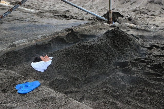 而山川砂むし温泉是熱砂浴,從たまて箱温泉走下去就是了,熱砂浴是指宿獨有的,沙米試過一次,全身的疲勞都可以解除。而這個山川砂むし温泉最特別的地方,就是可以一邊享受熱砂浴,一邊欣賞無敵海景。如果你同時享用たまて箱温泉,有共通劵1130 yen。