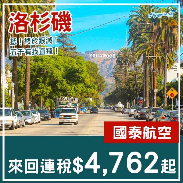 【洛杉磯】正!終於跌穿五千!國泰航空直航來回洛杉磯連稅$4,762起!2026年1月至3月指定日子出發