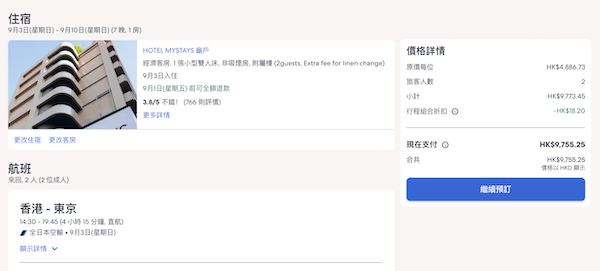 【預訂網址】https://www.expedia.com.hk/(入到去撳「套票行程」search)