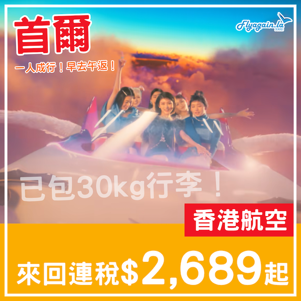 【首爾】繼續抵價飛韓!加碼包30kg行李!香港航空來回首爾連稅$2,689起!1月尾至6月中出發*