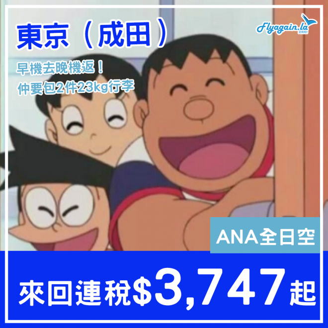 【東京】限時優惠!四千有找!ANA全日空來回東京成田連稅$3,747起!2023年9月至10月指定日子出發