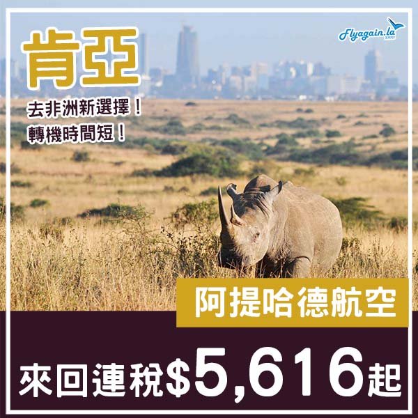 【肯亞】六千有找去非洲!阿提哈德航空來回內羅比連稅$5,616起!11月至2026年5月指定日子出發*