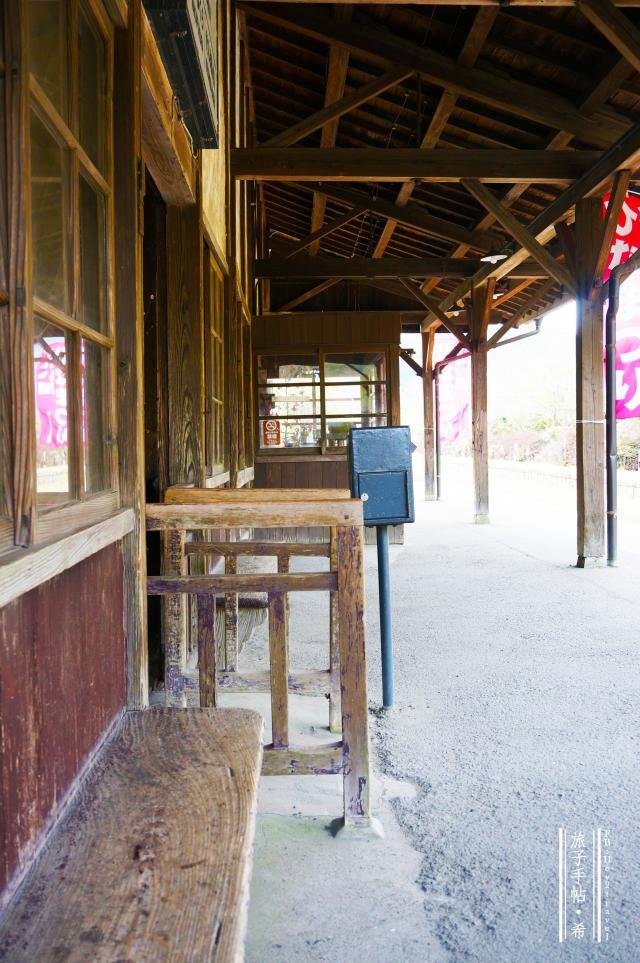 一排排的木椅,與那些年的日劇動漫畫面重疊,莫名地有股親切感湧上心頭。走到透明膠板櫃台前,這裡以前應該是售票處吧?檯上放了一本筆記本,任旅客自行翻閱及寫下留言,可把想說的話都寫下,又或者老老土土地寫個「XX到此一遊」也不錯,因為這本簿的作用本就是用來留個念嘛!