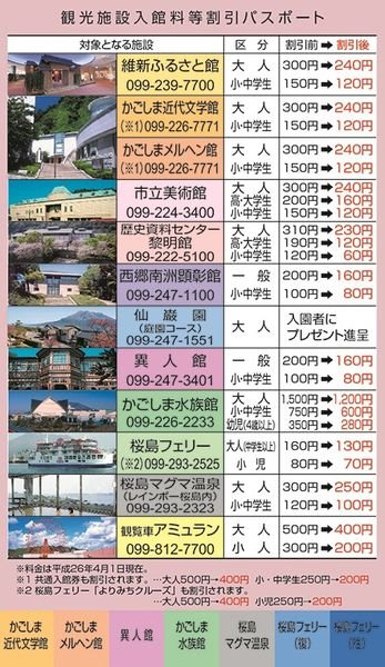 除此之外,在鹿兒島市內的許多設施及公園都有折價優惠喔!