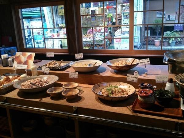 在京都有3家店舗,以蔬菜為中心,提供了可以品嚐到自助形式的餐廳。使用的全是以京都府内生產的有機(不使用農藥等,以施肥為養育)、無農藥且減農藥去做栽培的蔬菜。蔬菜是使用當天早上採摘的新鮮蔬菜,提供了沙拉和15種類以上的「家常菜(Obanzai)」(在京都日常生活中可以吃到的菜餚)。早餐菜單(7:00 am - 10:00 am)是沙拉和家常菜、粥、麵包等的「軽食自助吧」,付有飲料才490 JPY(含稅)而已,是非常合理的價位!不管是哪個菜單都能感受到季節感,還有滿滿的京都氣息。在觀光之前,體驗一下京都健康的食物吧。※照片為賀茂自助吧的示意圖。