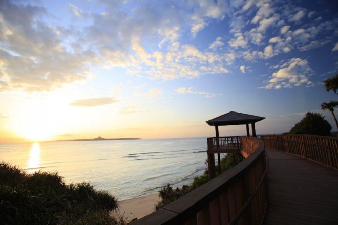 沖繩美麗海水族館內飼養著多種生物,其中也包括了夜行性生物,到了傍晚,這些生物就會開始活動,此時正是最適合觀賞牠們的時間。此外,海洋博公園所位於的本部町也是著名的夕陽景點。為天空染上橘色餘暉的本部町美麗夕陽,有著「夕陽之花」的美稱。在海豚劇場附近,沿著海岸往南延伸的海岸散步道是最適合欣賞夕陽的地點。