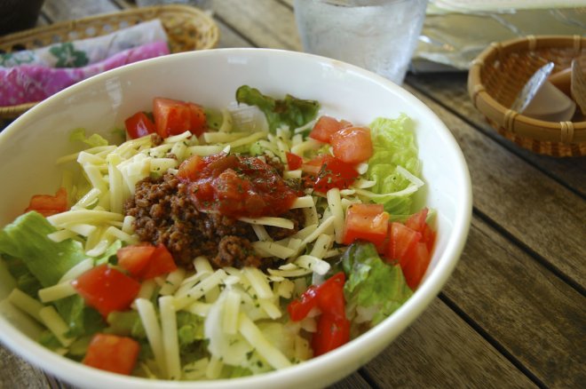 「塔可飯」這名稱聽起來可能有點像墨西哥料理「塔可餅」,而「塔可飯」的基本配料也確實類似墨西哥捲餅,只是外層是以白米飯包覆,是道地發源於沖繩的高人氣食物,最熱門的吃法是在淋上塔可肉醬後,與起士、生菜、番茄、莎莎醬等一起食用,另外,「KING TACOS」則是沖繩最著名的塔可飯創始店,除了好吃的料理外,還提供十分飽滿的份量,滿足大家的胃口!